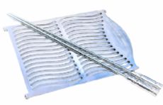 Lâmina de aço inox escurecido.